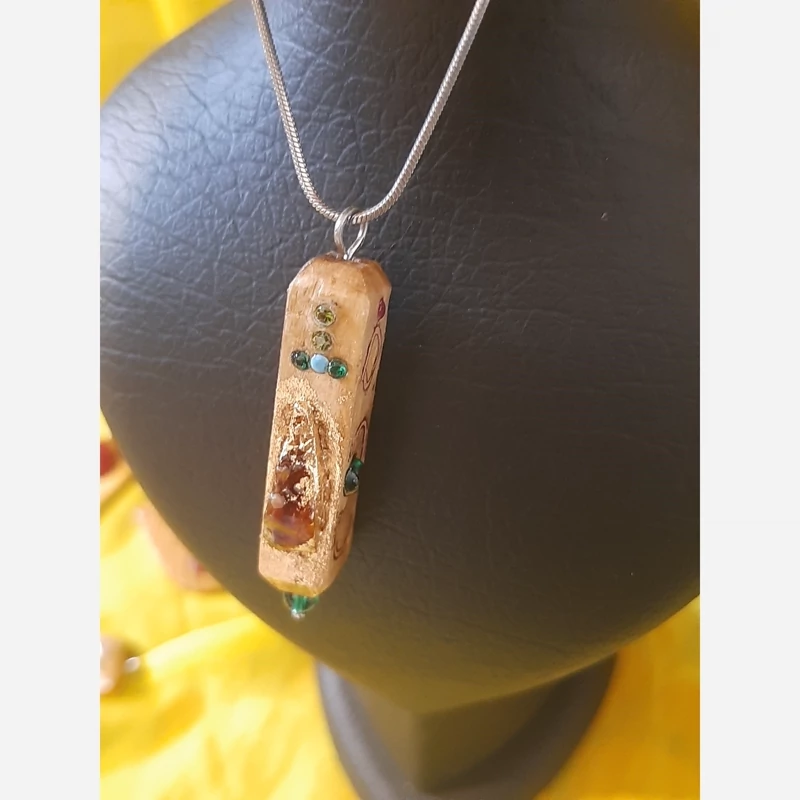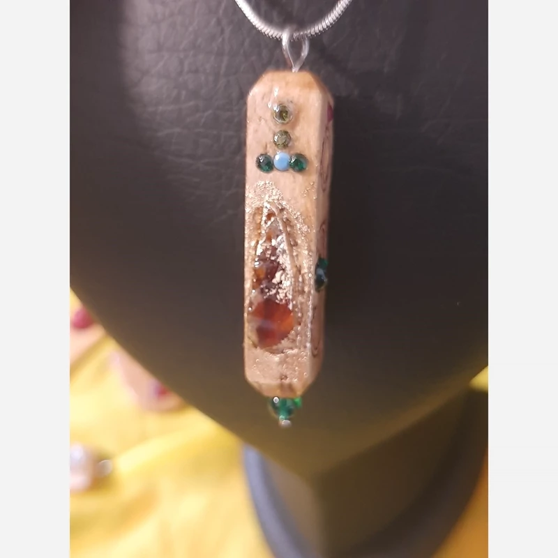 آویز گردنی چوبی با سنگهای معدنی اصل