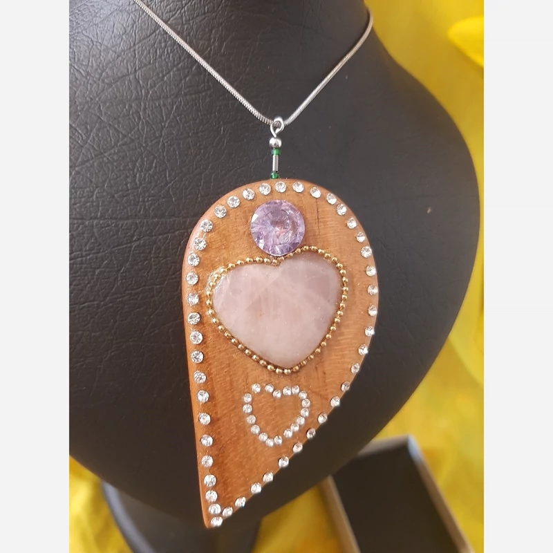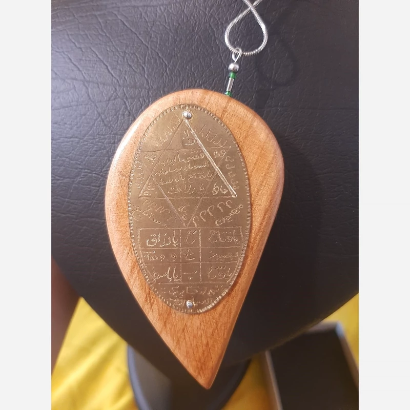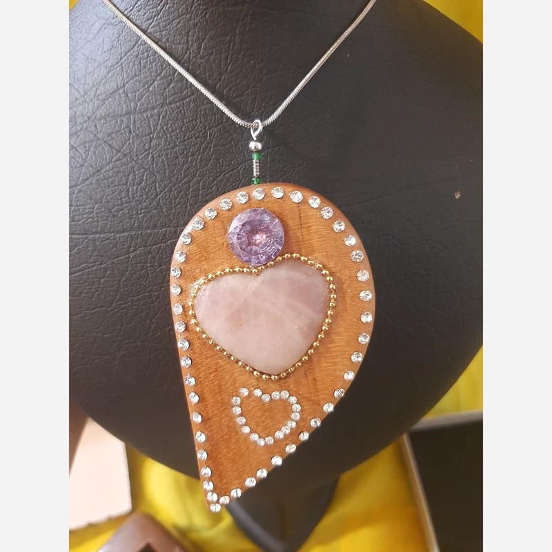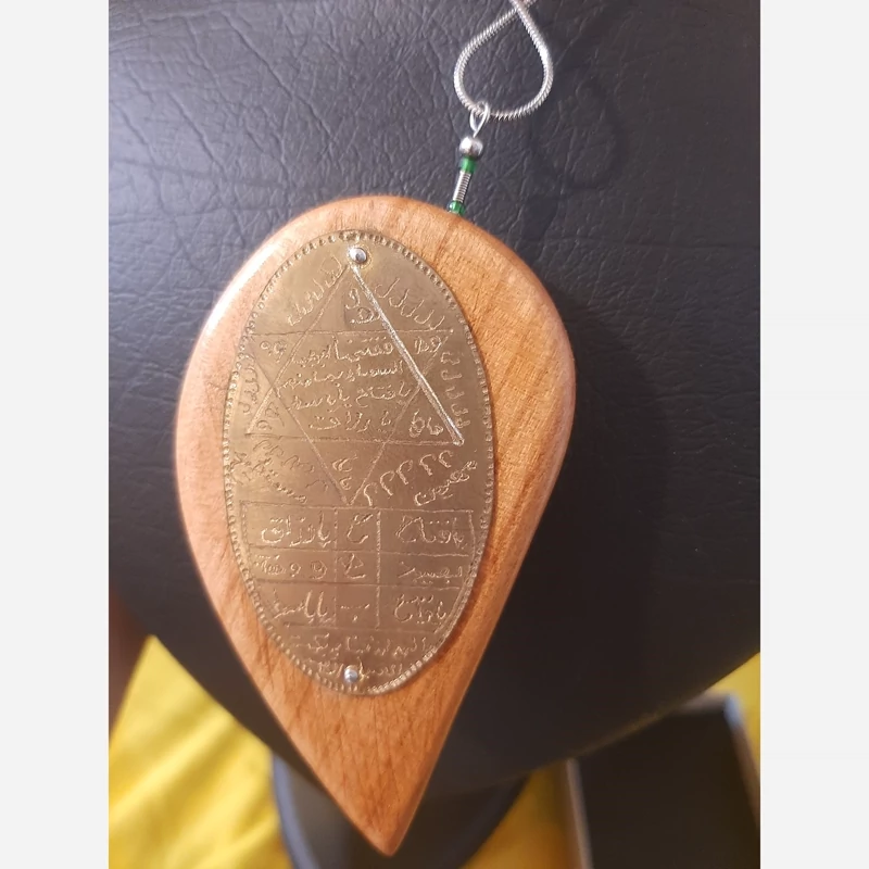 آویز چوبی با سنگ امیتیست و کواتز و حکاکی ستاره داوود پشت کار