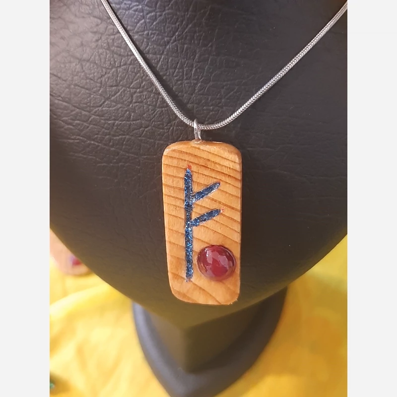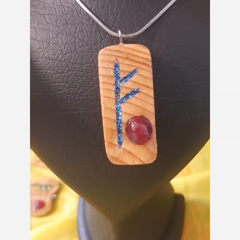 آویز گردنی چوبی با سنگ یاقوت سرخ هندی