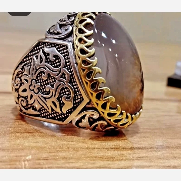 انگشتر بزرگ و سنگین زیبا نقره با سنگ معدنی زیبا اصل شجره