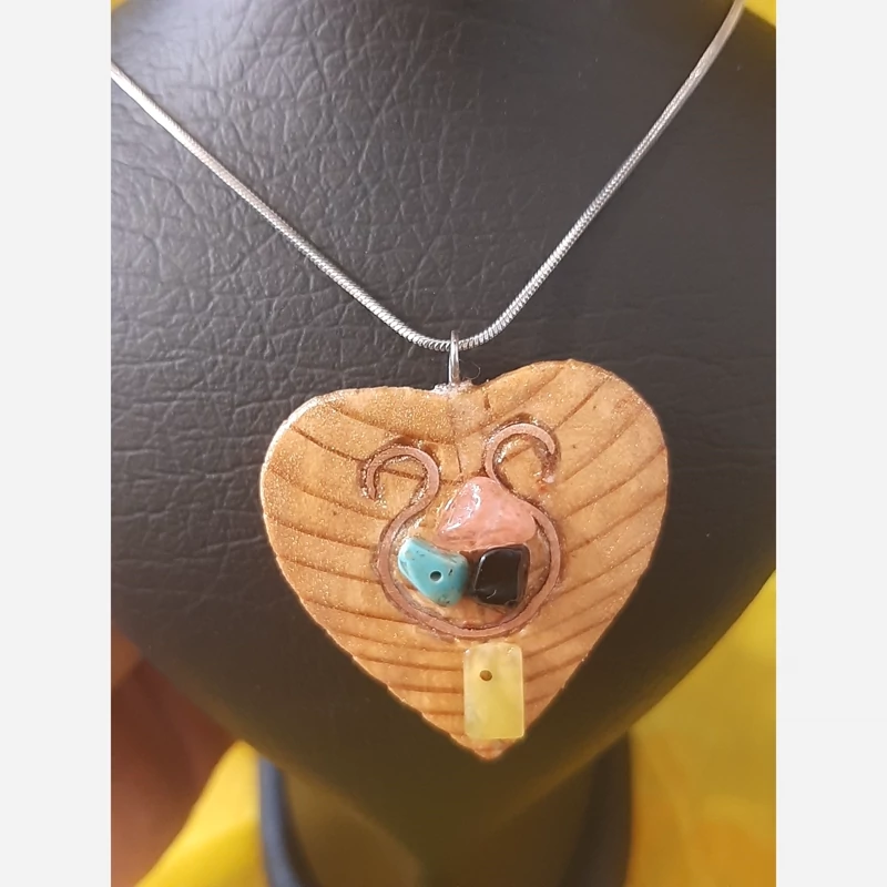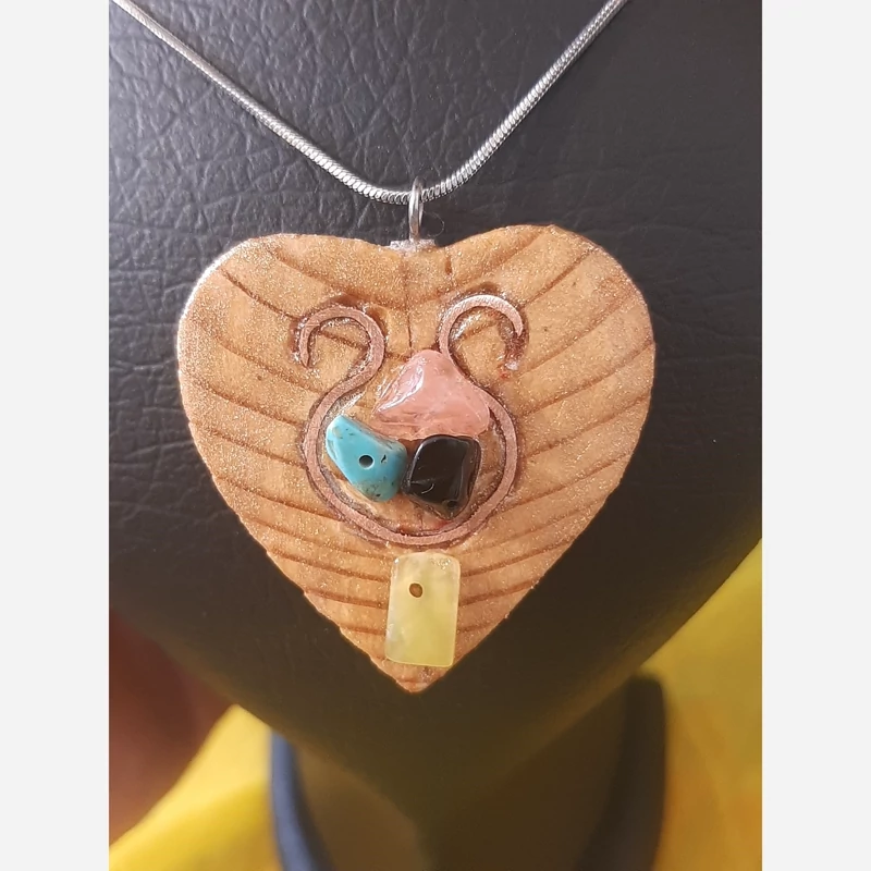 گردنی چوب گردو با چهار نوع سنگ معدنی نامنظم فیروزه حدید کوارتز ابستین
